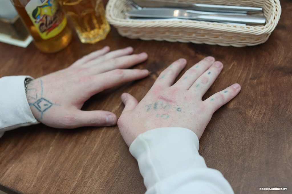 — Я сделал ее в 16 лет. Это три палочки, олицетворяющие 3 года — возраст, когда я попал в детский дом. Бил, кстати, сам, это «гелька». Хотел свести, ходил узнавать, но мне сказали, что не стоит.